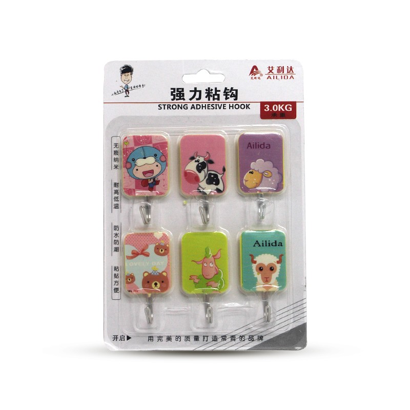 Plastic Adhesive Wall Hook 6pcs